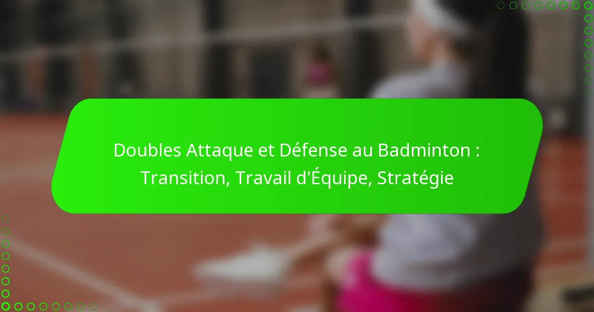 Le badminton en double nécessite un mélange de travail d’équipe stratégique et de transitions rapides entre l’attaque et la défense pour surpasser les adversaires. Les joueurs doivent coordonner leurs mouvements, communiquer efficacement et adapter leurs rôles en fonction de la dynamique du jeu pour maintenir une stratégie cohérente. En tirant parti d’une sélection de coups précise et en exploitant les faiblesses, les équipes peuvent améliorer leurs jeux offensifs tout en garantissant une couverture défensive solide.