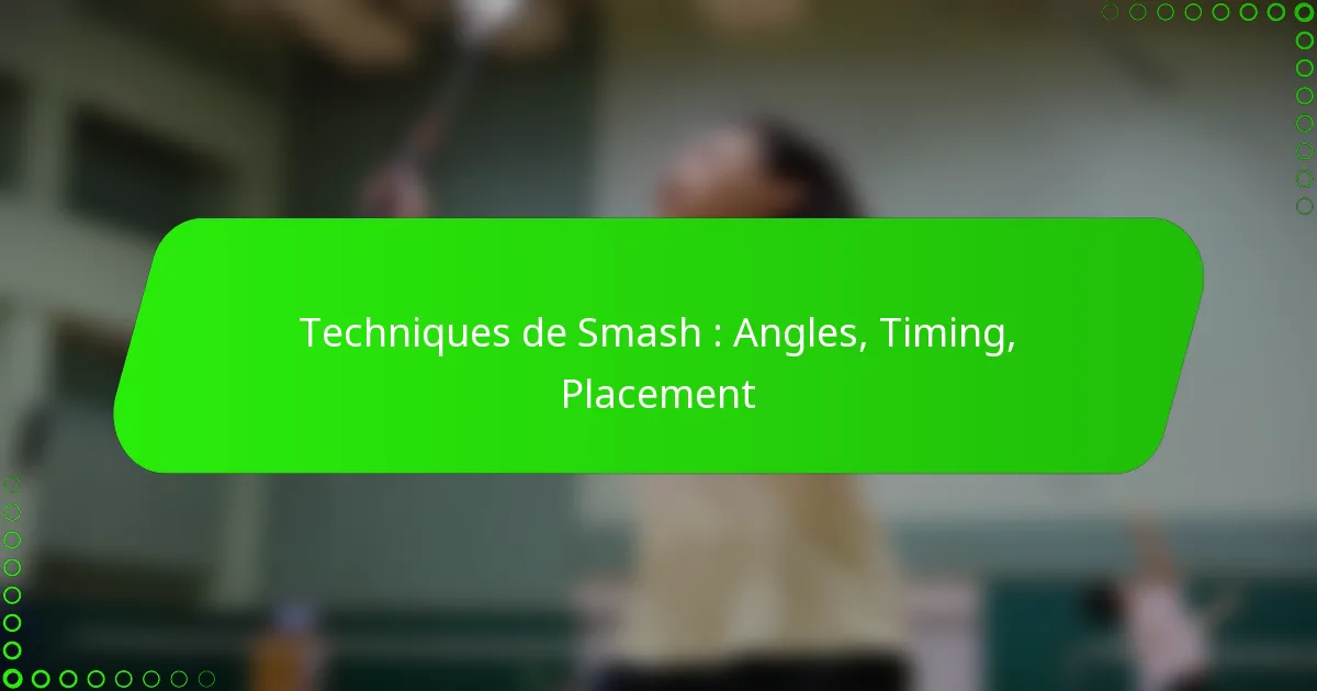 Maîtriser les techniques de smash implique une compréhension aiguë des angles, du timing et du placement pour améliorer les performances dans des sports comme le badminton et le tennis. En utilisant efficacement ces éléments, les athlètes peuvent délivrer des coups puissants qui mettent leurs adversaires au défi et exploitent les faiblesses sur le terrain. Le timing est essentiel pour maximiser à la fois la puissance et la précision, tandis qu’un placement stratégique peut créer des opportunités de marquer en rendant les retours difficiles pour l’adversaire.